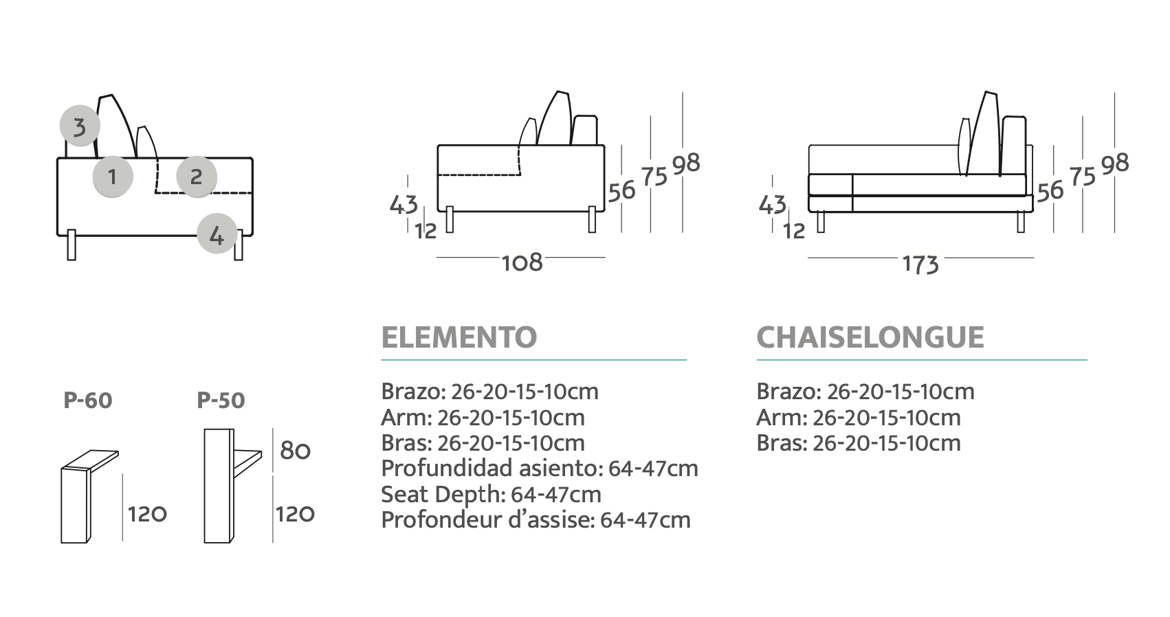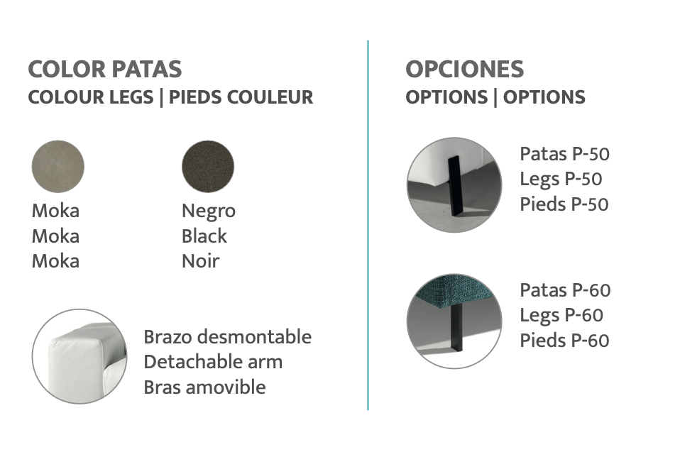 Esta colección de líneas rectas y minimalistas abre un abanico de posibilidades infinitas para personalizar tu comodidad. Con opciones de ancho de brazo, dos profundidades, y una variedad de colores para los pies,