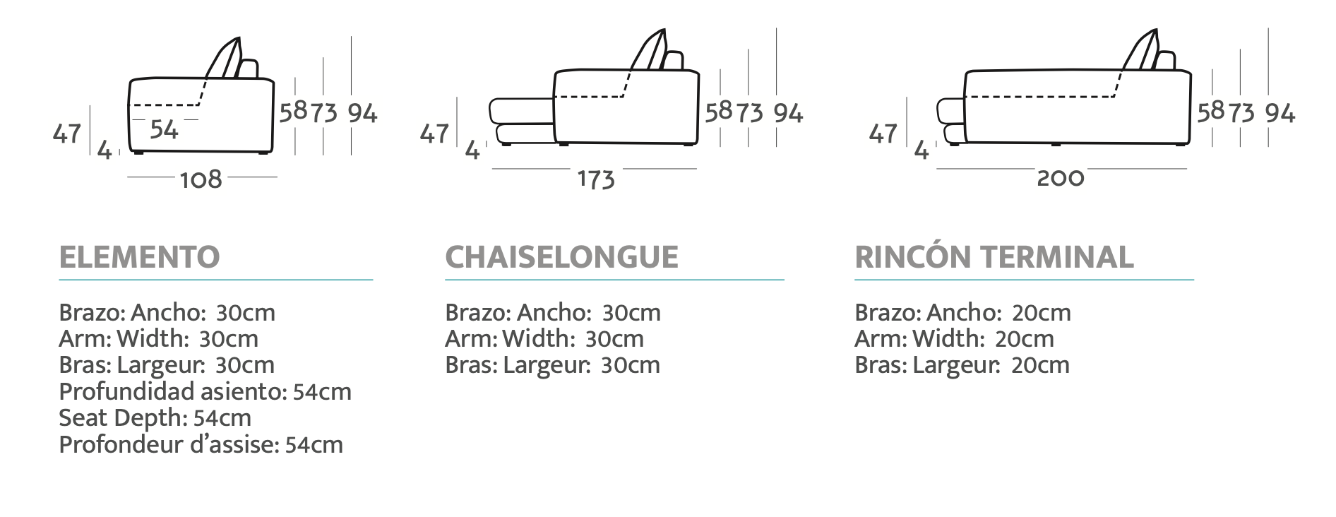 El respaldo, elaborado con plumón y celdas que evitan su desplazamiento, te envuelve a la perfección. Este magnífico sofá culmina con un elegante brazo de 30 cm, brindándote una experiencia de descanso incomparable.